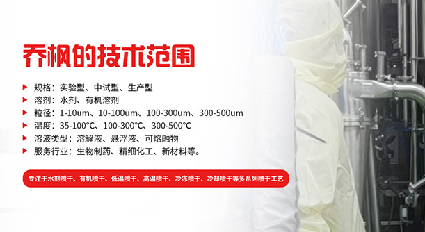 喬楓發(fā)明了新的低溫噴霧干燥技術(shù),在低溫的狀態(tài)下保持物料活性,某種程度上可以取代凍干機(jī),大幅度的提高生產(chǎn)產(chǎn)能。適用于(司美格魯肽、多肽、氨基酸、多種酶菌、多種蛋白、噬菌體、 抗生素、微膠囊、等物料),詳情請(qǐng)咨