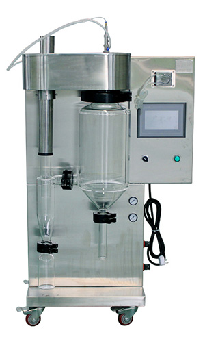 小型 實驗型 微型噴霧干燥機(噴霧干燥儀/噴霧干燥機)及其主要適用于高校、研究所和食品醫(yī)藥化工企業(yè)實驗室生產(chǎn)微量顆粒粉末,對所有溶液如乳濁液、懸浮液具有廣譜適用性, 適用于對熱敏感性物的干燥如生物制品、生物農(nóng)藥、酶制劑等,因所噴出的物料只是在噴成霧狀大小顆粒時才受到高溫,故只是瞬間受熱,能保持這些活性材料在干燥后仍維持其活性成份不受破壞。