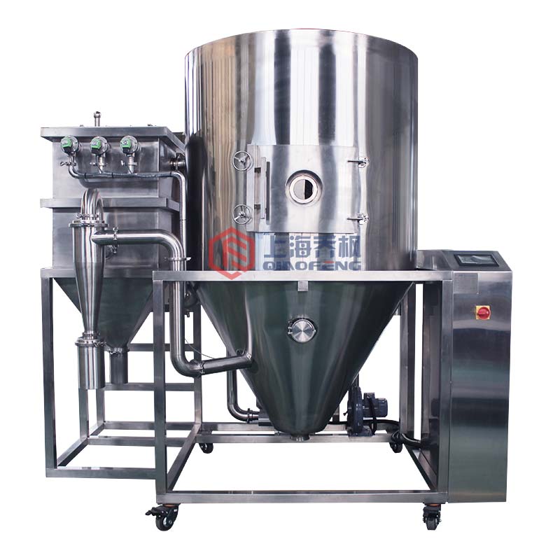 1、干燥速度快,料液經霧化后表面積大大增加,在熱風氣流中,瞬間就可蒸發95-98%的水份,完成干燥的時間僅需十幾秒到數十秒鐘,特別適用于熱敏性物料的干燥。