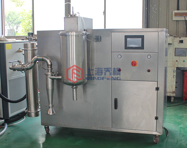 低溫噴霧干燥機及其主要適用于高校、研究所和食品,醫藥,化工,企業,實驗室生產微量顆粒粉末,對溶液如乳濁液、懸浮液具有廣譜適用性, 適用于對熱敏感性物的干燥如生物制品、生物農藥、酶制劑等,因所噴出的物料只是在噴成霧狀大小霧滴時,才受到干燥風系統,故只是瞬間受熱,能保持這些活性材料在干燥后仍維持其活性成份不受破壞。該型噴霧干燥機可以實現在常溫下進行噴霧干燥的低溫霧化干燥及高低溫霧化干燥兩用機型。