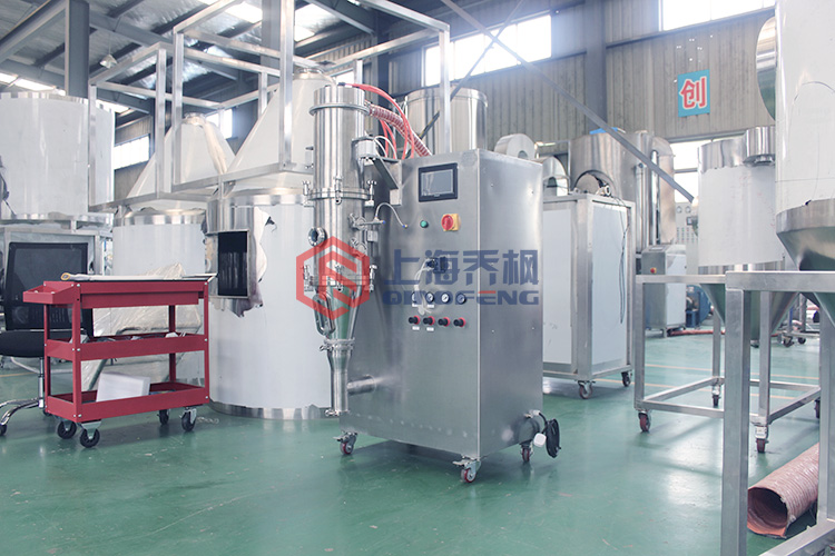 空氣經加熱、凈化后,由引風機從下部引入,經漏斗的孔板篩板。在工作室內,通過攪拌和負壓形成流化。在快速蒸發后,水被廢氣帶走,材料很快干燥。