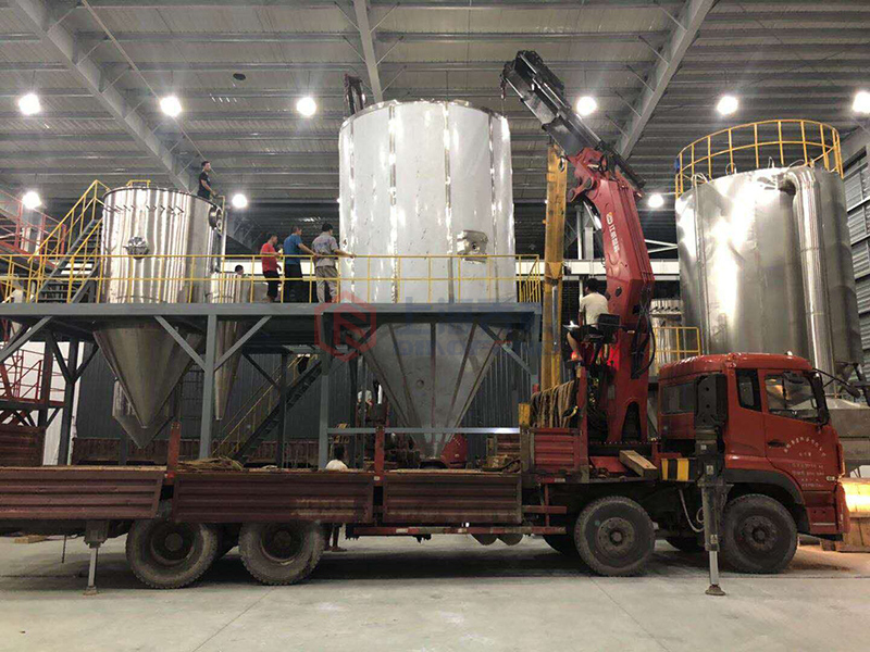 將熱風(fēng)送入到強(qiáng)制分配器中,通過霧化塔的均風(fēng)板出來。和熱風(fēng)充分接觸并迅速干燥。