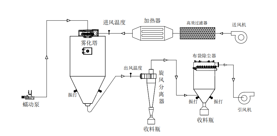 干燥后的粉末狀產品通過收料器收集,可以根據需要進一步處理。